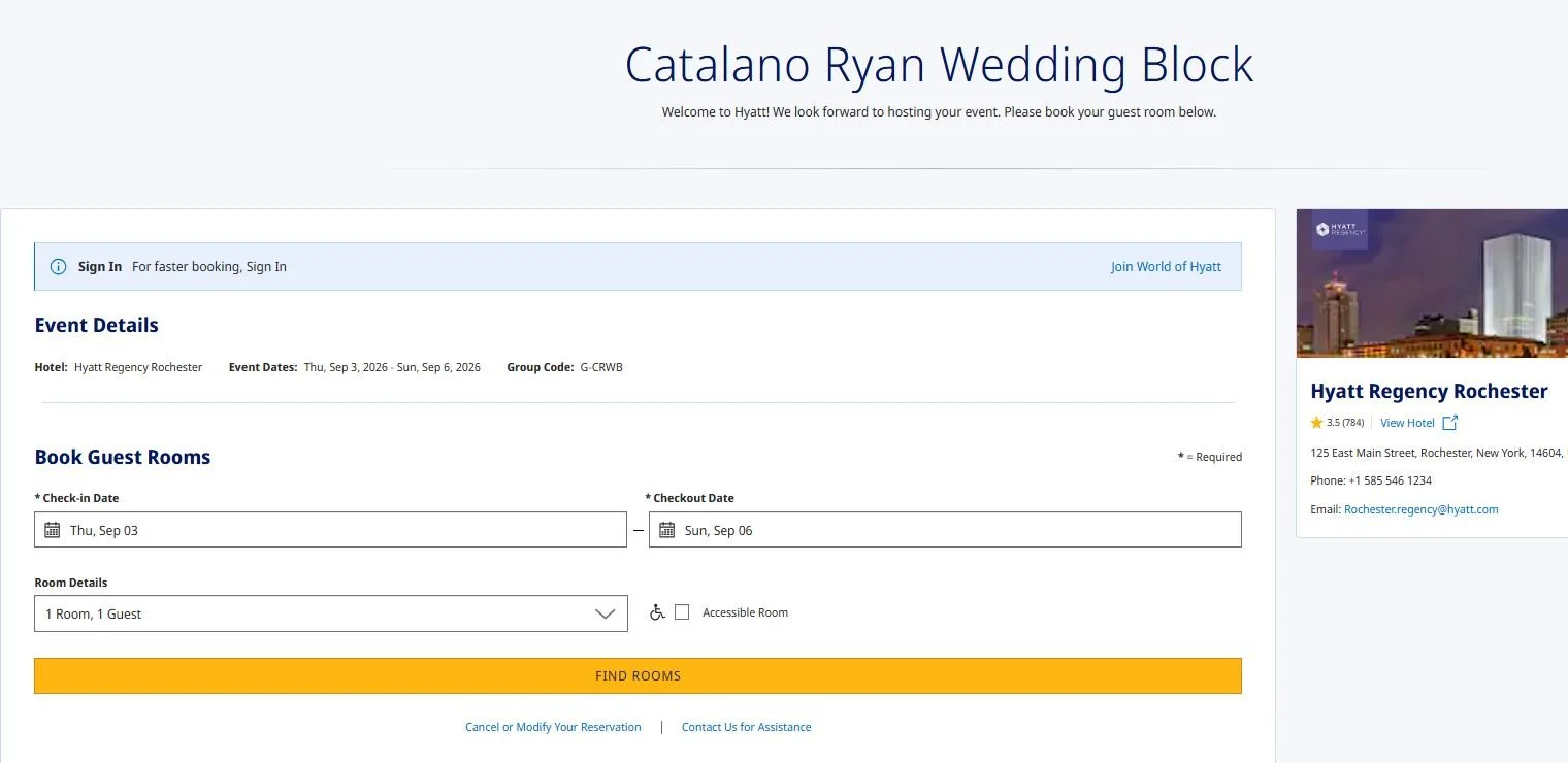 Thank you for considering Hyatt Regency Rochester for your Wedding Guests.
